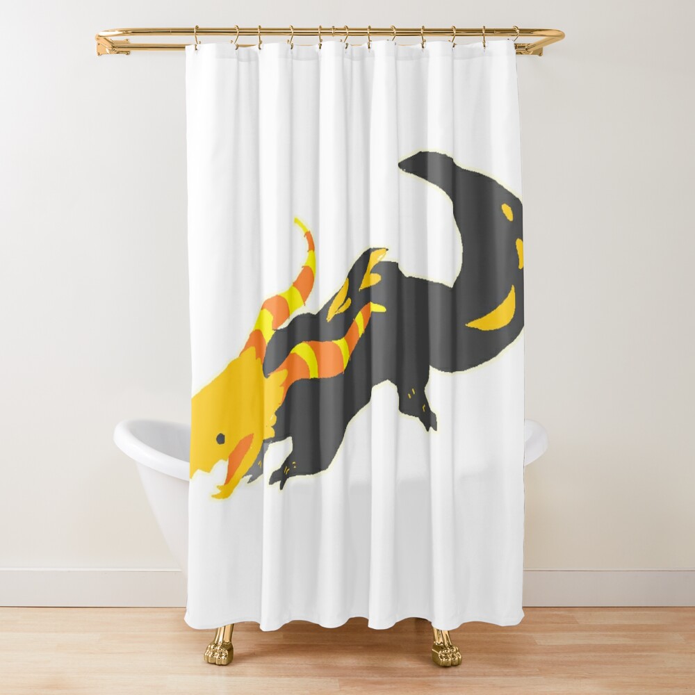 Orange Lizard Rain World Shower Curtain